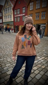 Bluza Bergen to cynamonowa barwa, która jest inspirowana architekturą miasta oraz wybrane kolory literek, również z inspiracji kolorów budynków zamknięte w spójną całość.