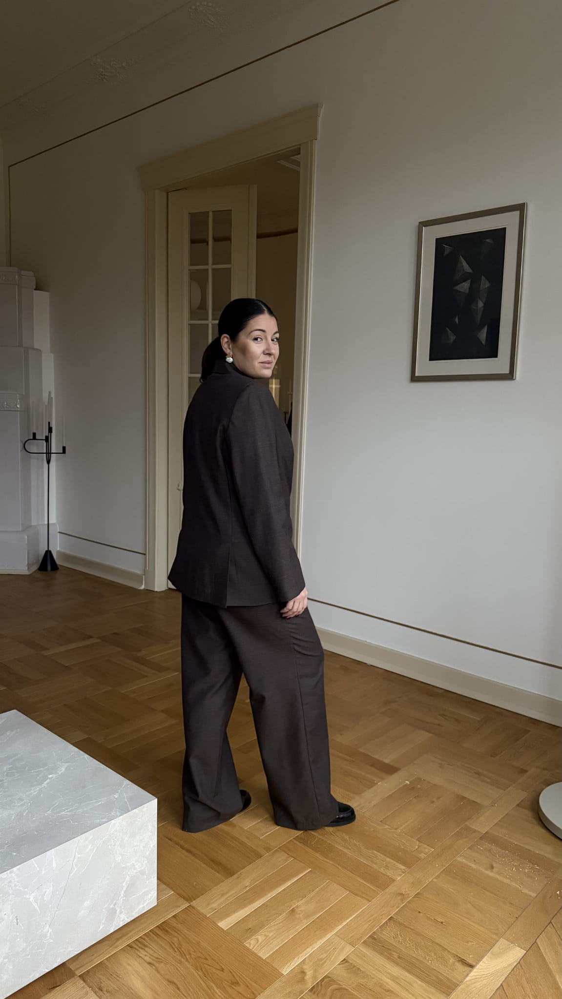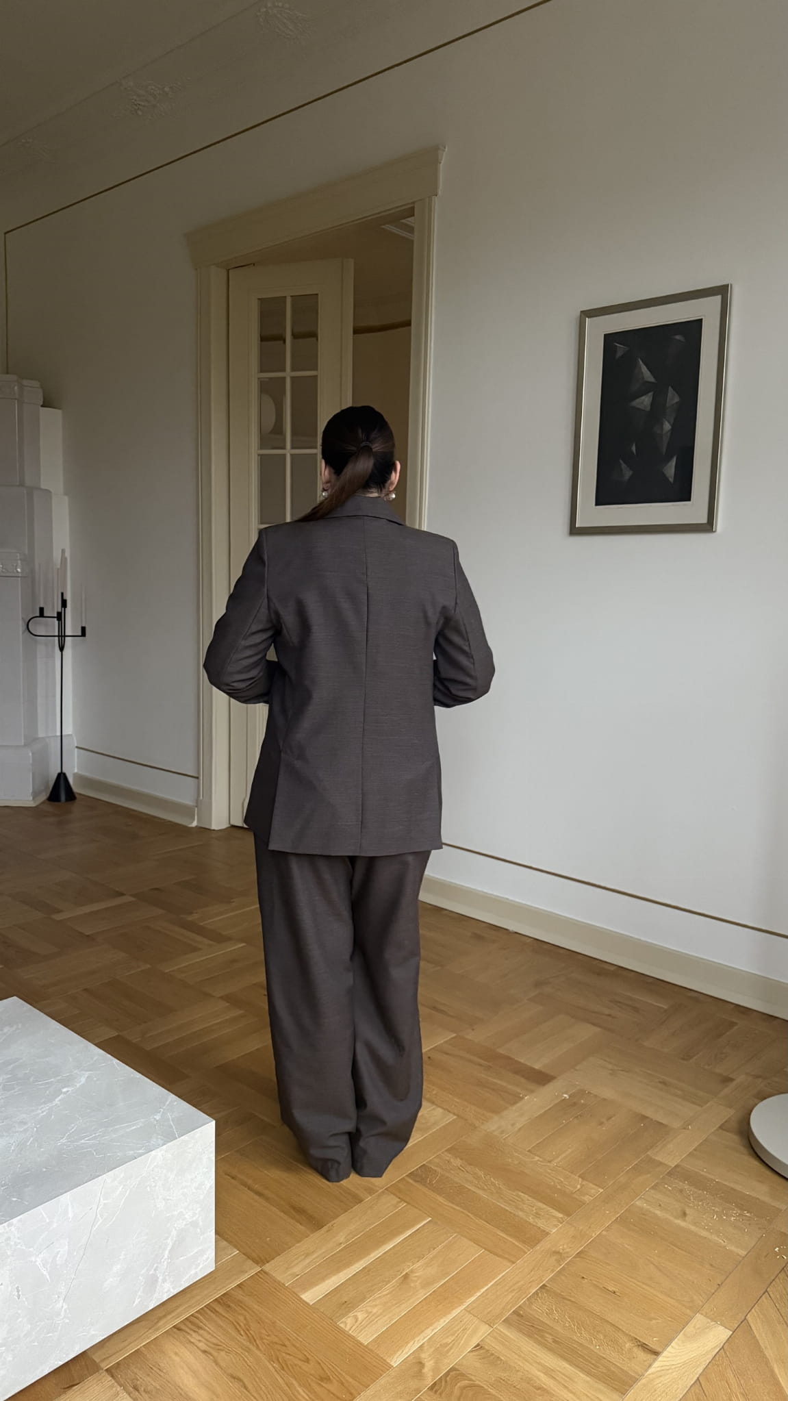 Marynarka, która ma być nowoczesna, wygodna i z eleganckimi wykończenia. Wełna 100% , a podszewka wiskoza czyli super oddychalność.
