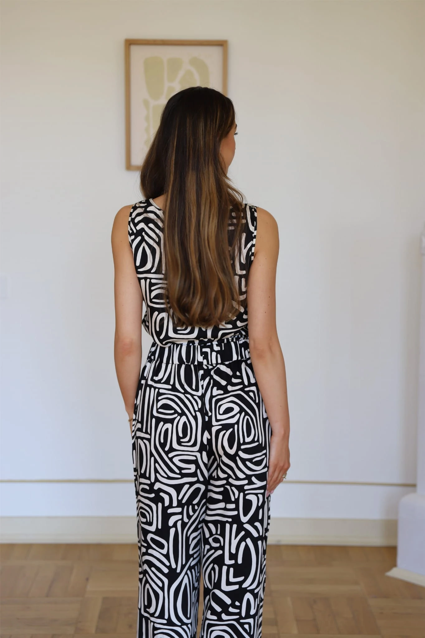 Szerokie spodnie zaprojektowane jako dopełnienie topu - razem tworzą efekt nowoczesnego, lekkiego kombinezonu.