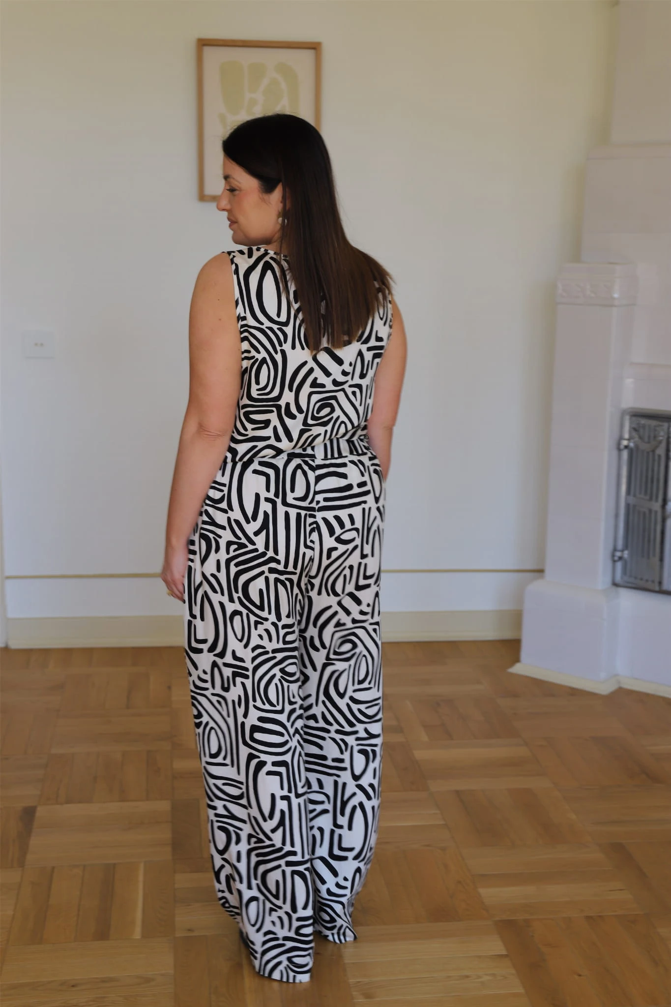 Szerokie spodnie zaprojektowane jako dopełnienie topu - razem tworzą efekt nowoczesnego, lekkiego kombinezonu.